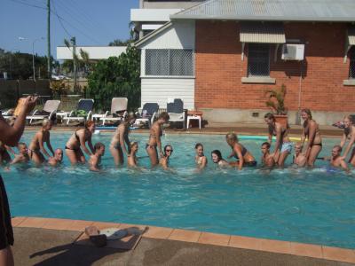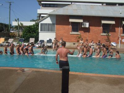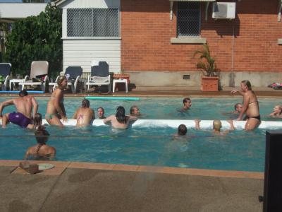 es mussten 20 leute auf die rolle, 16 sollten stehen, wenn wir es geschafft hätten hätte es 18 pitcher mit alkohol gegeben! Wir haben alle ein glas bekommen, weil wir es versucht haben!